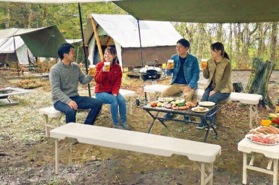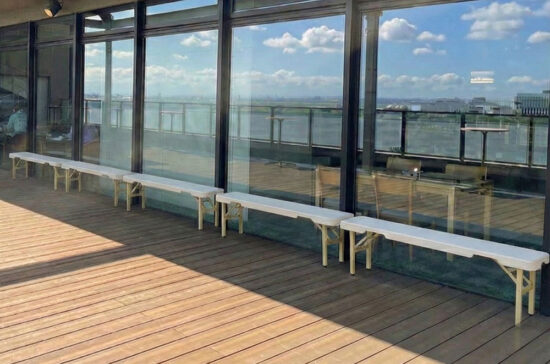 省スペースで軽くて設置も楽々、ワンタッチで折りたたみが出来るスタッキングベンチ。